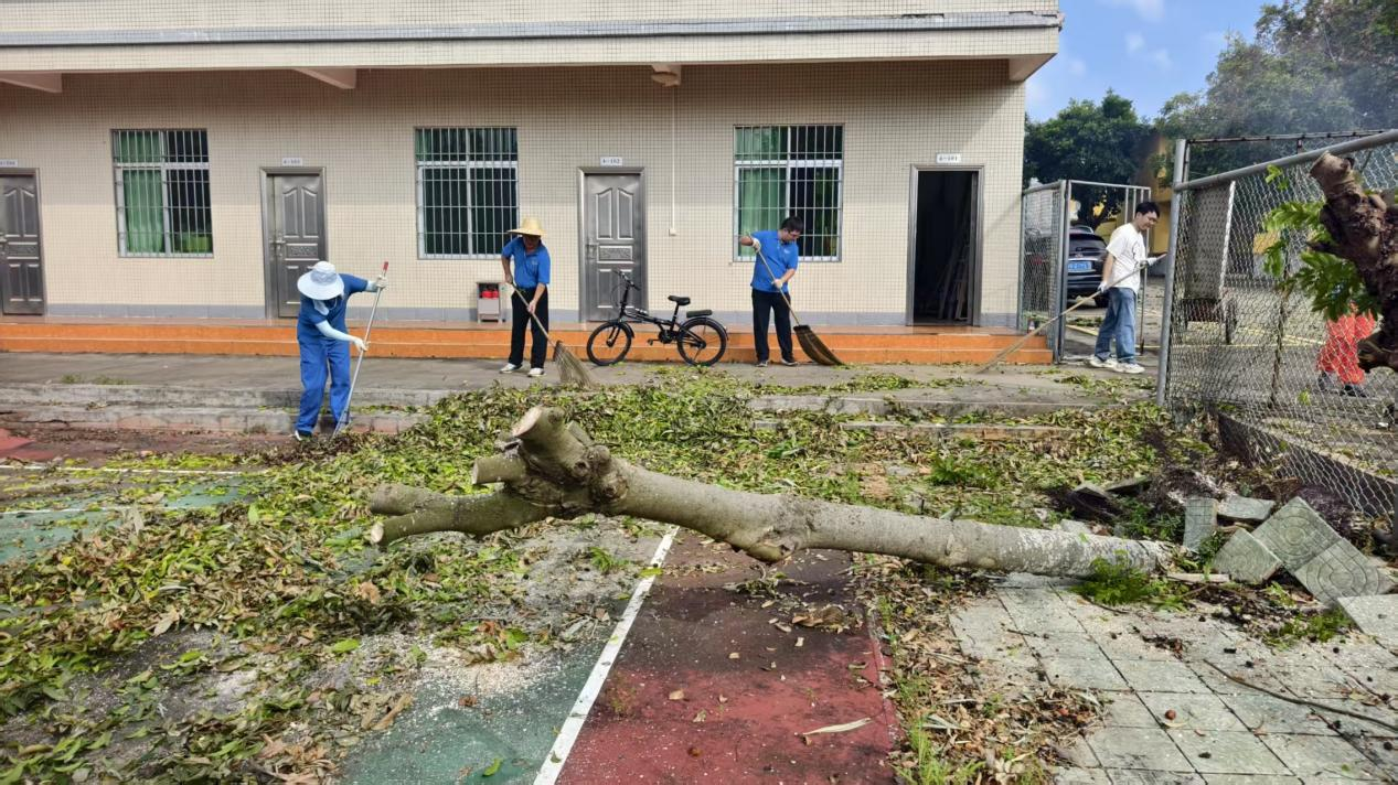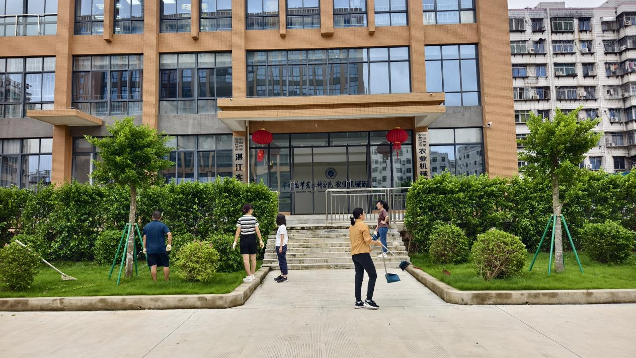 快速响应,统筹部署救灾力量。灾情发生后,农机所立即成立应急指挥小组,全面摸排受灾情况并制定抢修方案。10月6日至7日,值班领导带头组织全体管理人员奔赴霞山所部,打响灾后恢复“第一战”。工作人员集中开展道路清障、倒伏树木扶正加固、绿化带修复及环境卫生整治等工作。与此同时,后勤保障人员第一时间联系湖光所部供电、供水主管部门,逐段排查电路故障,全力恢复了湖光所部的水电供应。