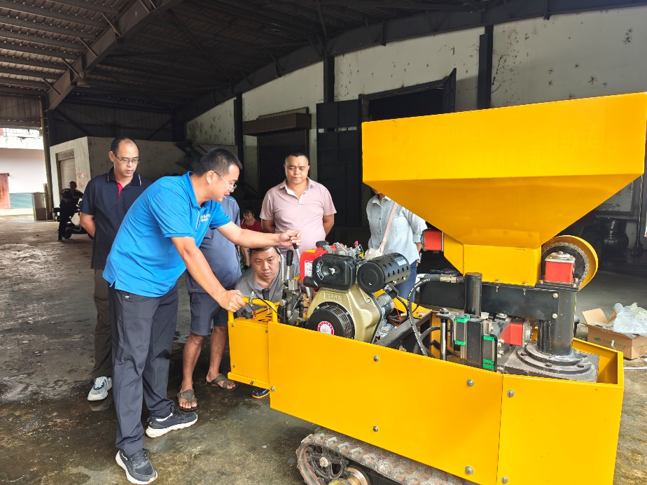 临沧试验站站长字文梅老师对专委会的科技服务表示热烈欢迎和衷心感谢。字站长表示:“邓主任和专委会专家的到来,及时为我们解决了丘陵胶园除草难、施肥难的问题。我们将立即在合作农场部署这两台设备,开展应用示范推广,并严格落实技术反馈职责,密切跟踪记录使用效果和改进需求,及时向研究团队反馈,共同努力推动橡胶生产全程机械化技术在实践中不断完善和普及。”
