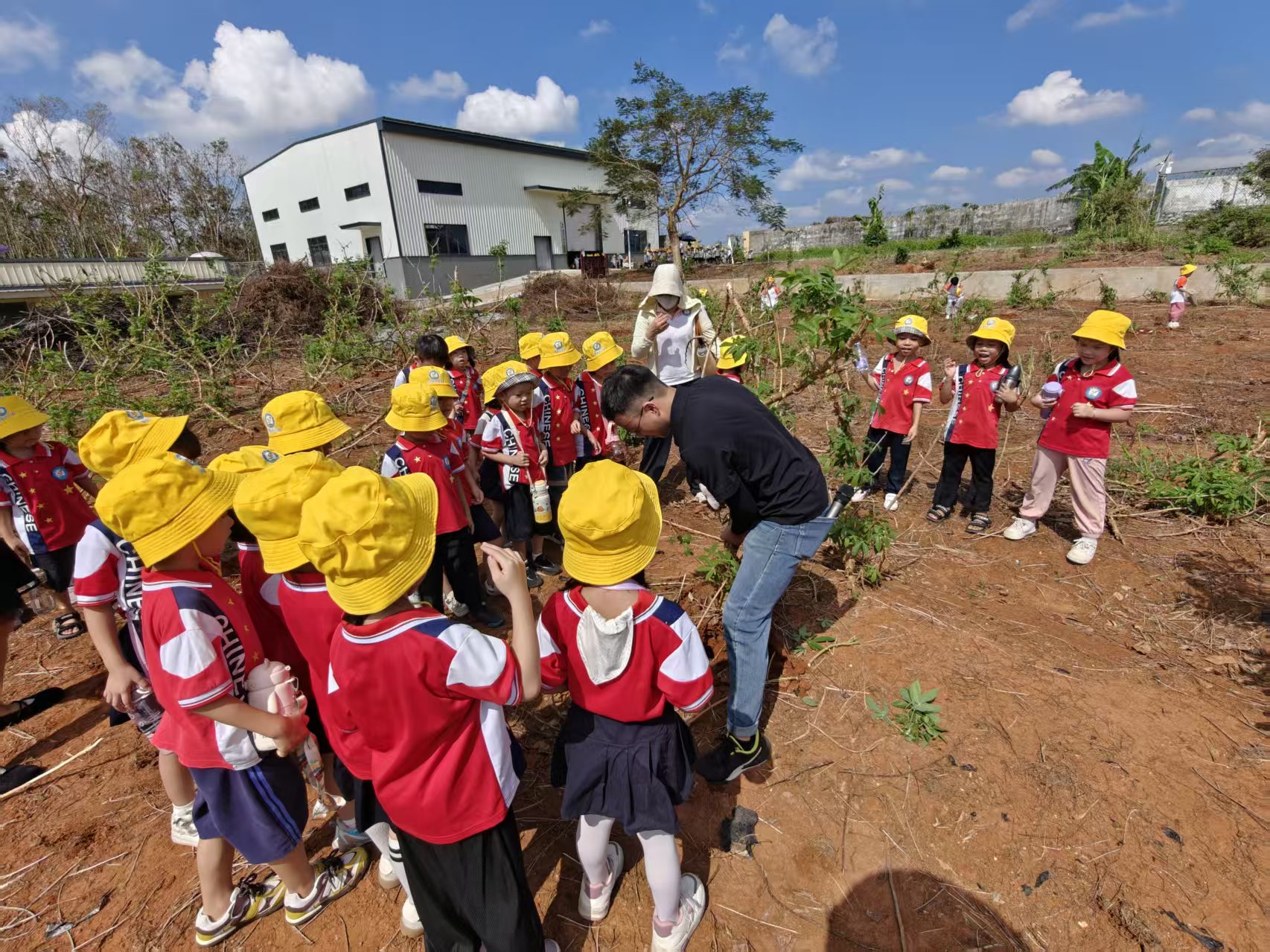 之后,小朋友们戴着遮阳帽,兴高采烈地奔赴户外试验田。在木薯种植示范基地,沾满泥土的小手费劲地刨开松软的土地,当看到胳膊大小的木薯破土而出时,欢呼声此起彼伏。这种亲身体验让抽象的“粒粒皆辛苦”化作真切的感受。